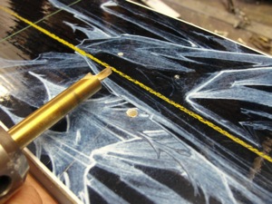 - Mark small holes with a very sharp awl by hand at the hole locations