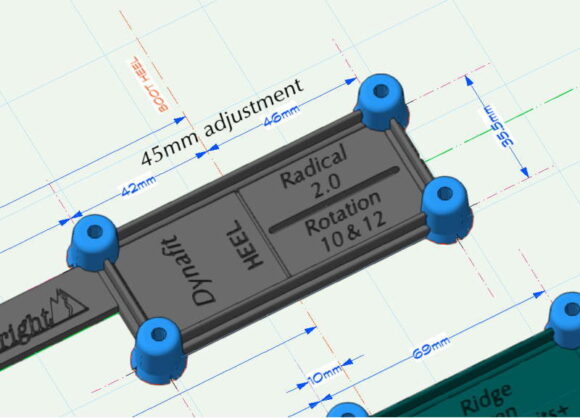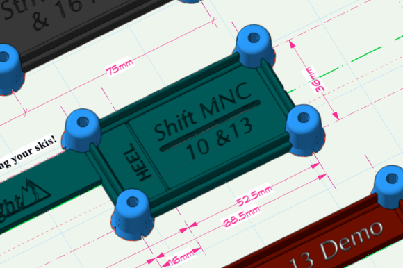 So we shifted the new Salomon Shift MNC rear layout tool accordingly and utilized the 45mm (IIRC) heel adjustment range: